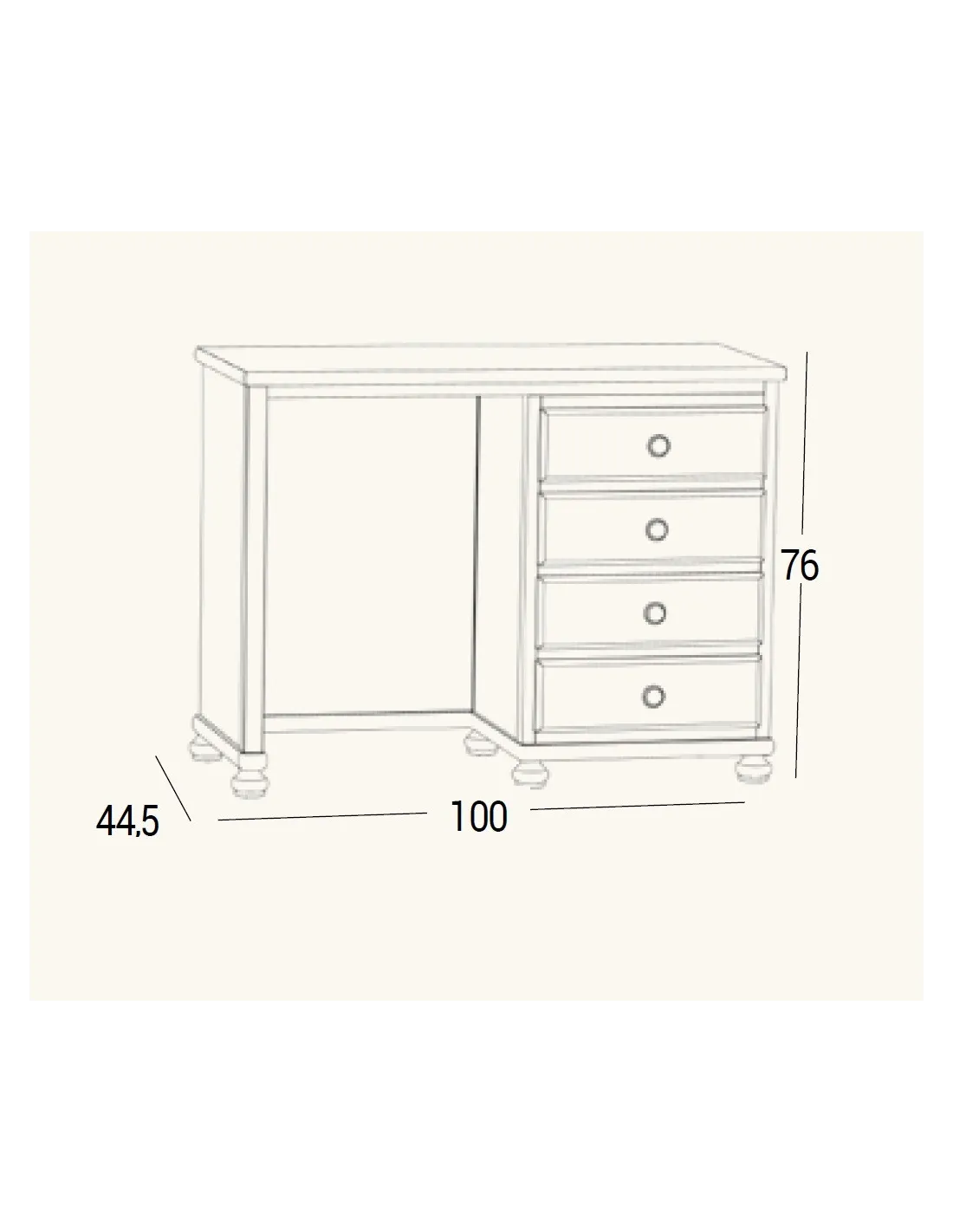 Este escritorio de madera maciza 100 se puede personalizar en base a cuatro series de colores con terminaciones barnizadas, lacadas, decapés y glaseados.